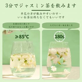 ジャスミン茶を一杯淹れる時、数粒だけ入れれば十分です!淹れ方:6-8粒の取ってカップに入れてから、90℃のお湯を注ぎます。しばらくしてから濃厚な花の香りをするジャスミン茶をおいしくいただけます。