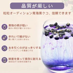 自然乾燥させて,馥郁としている:黒クコの色は真っ黒に光って光沢があり、原生原色で、丸くてふっくらしていて、果物の柄が短くて白色を呈している。黒クコの実は自然太陽干し脱水乾燥により、栄養成分の流失を招くことがなく、日焼けしたクコの栄養価がもっと高く、食感がもっと良く、噛んで食べることができる。
