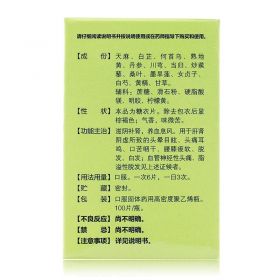 【成分・分量】 天麻、白止、何首烏、熟地黄、丹参、川窮、当帰、ハマビシ、桑の葉、墨旱蓮、女貞子、白芍、黄精、甘草。