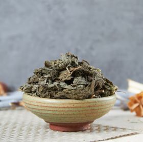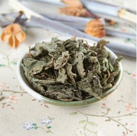 シソ科 Labiatae 紫蘇 Perilla frutescens (L.) Britt. var. crispa Decne. (チリメンジソ)の葉を乾燥したもの。